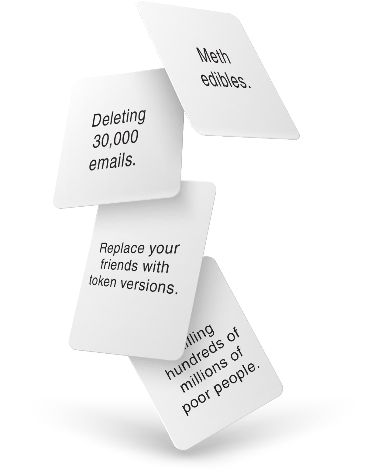 - Dive into Debates: Some cards might ignite fiery debates, philosophical discussions, or at the very least, a good old-fashioned argument. Perfect for those who love to stir the pot!